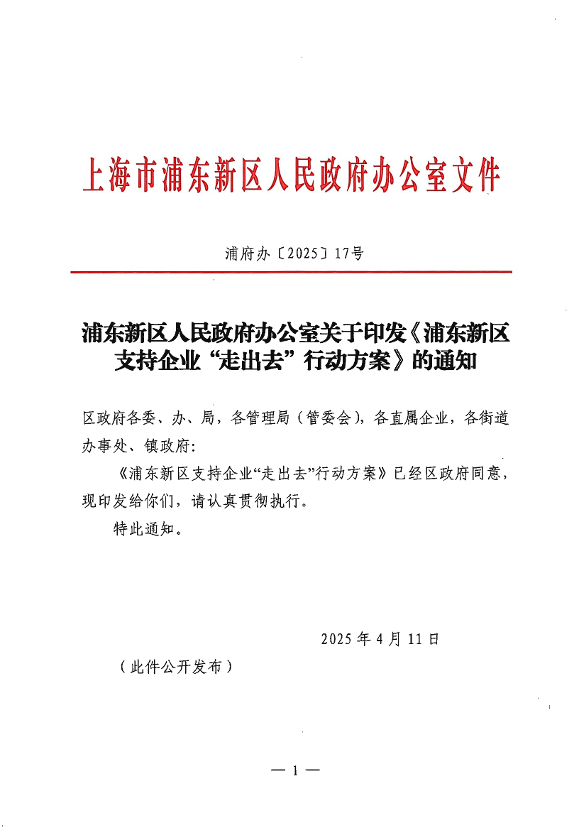 關(guān)于印發(fā)《浦東新區(qū)支持企業(yè)“走出去”行動(dòng)方案》的通知