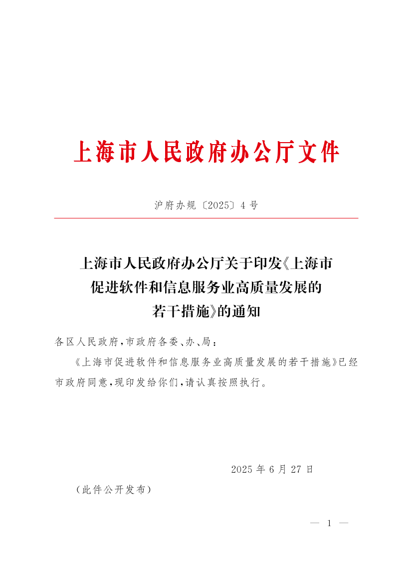 上海市人民政府辦公廳關(guān)于印發(fā)《上海市促進軟件和信息服務(wù)業(yè)高質(zhì)量發(fā)展的若干措施》的通知