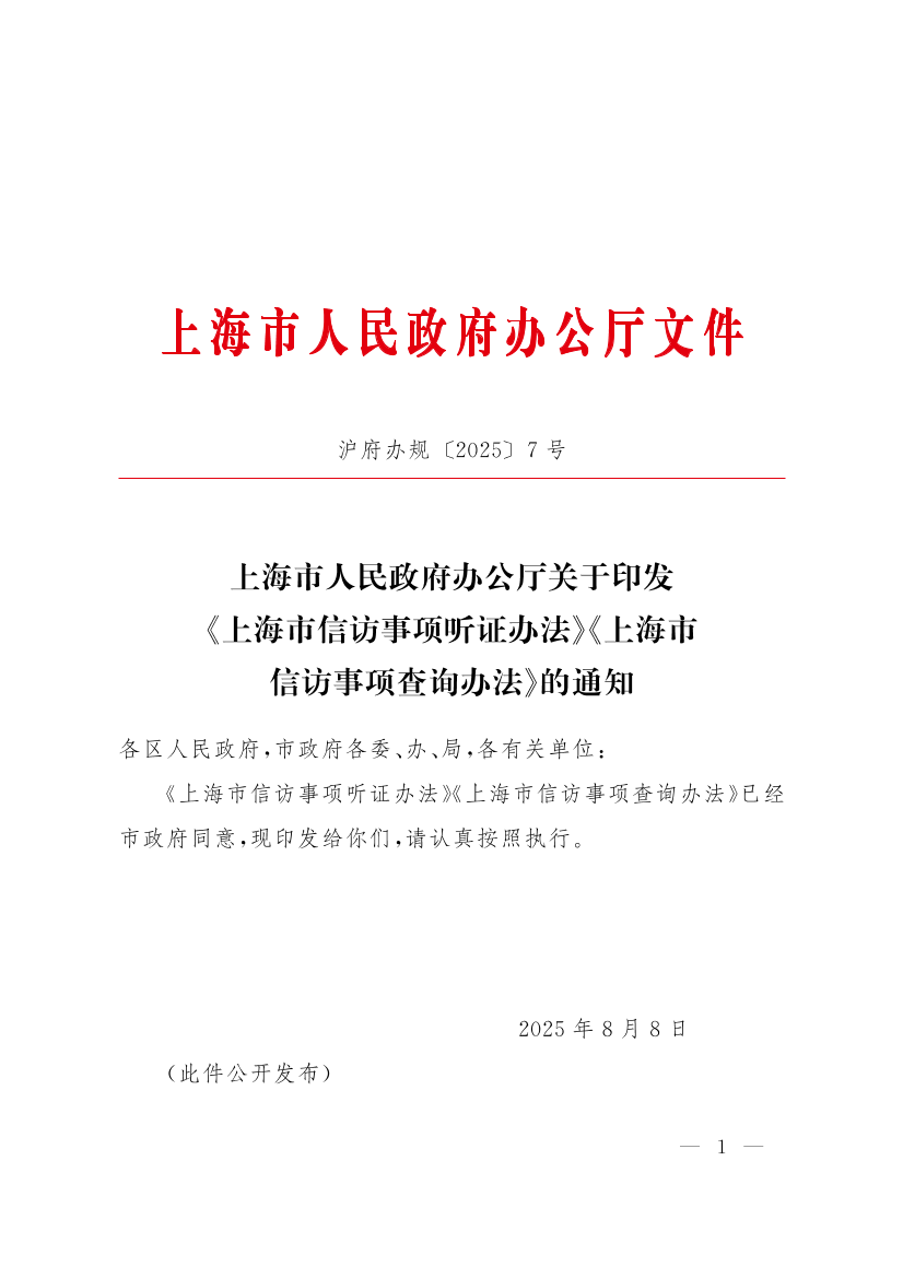 上海市人民政府辦公廳關于印發(fā)《上海市信訪事項聽證辦法》《上海市信訪事項查詢辦法》的通知