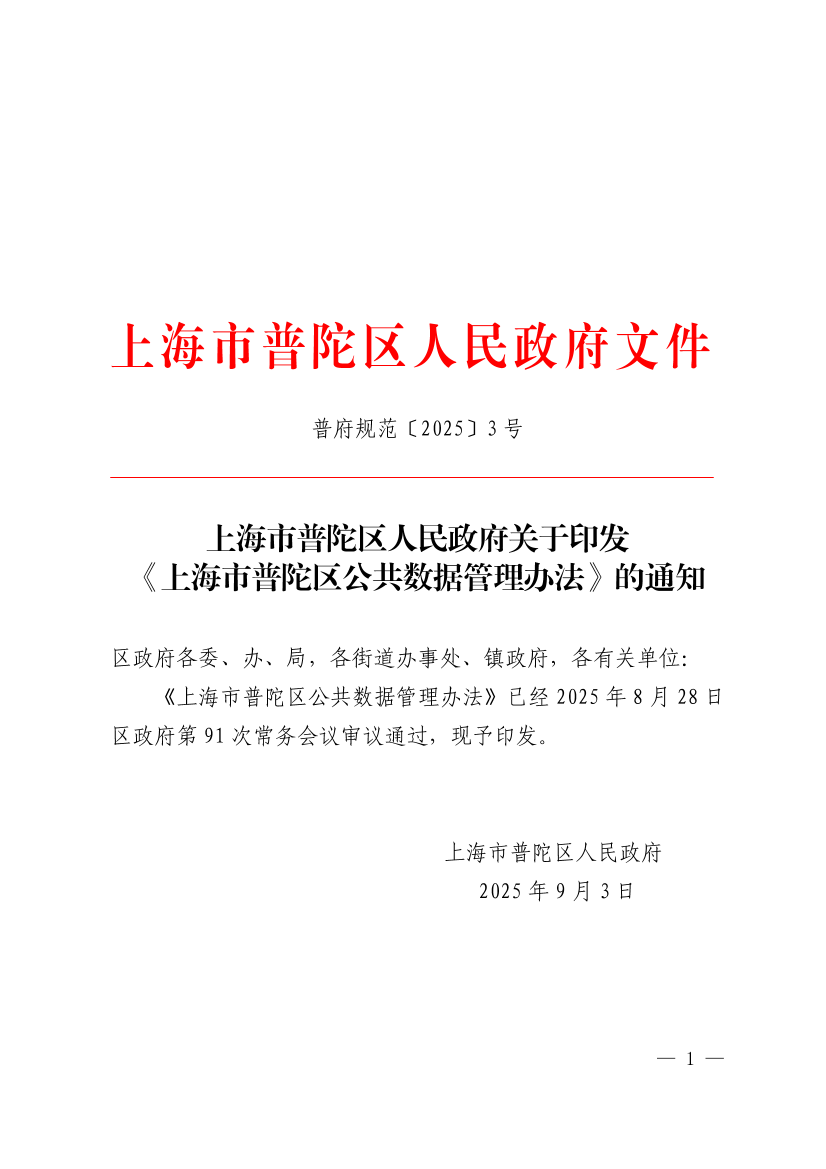 ??《上海市普陀區(qū)公共數(shù)據(jù)管理辦法》已經(jīng)2025年8月28日區(qū)政府第91次常務(wù)會(huì)議審議通過(guò),現(xiàn)予印發(fā)。