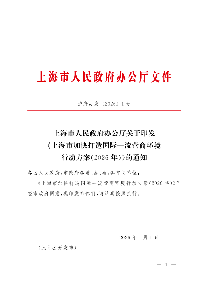 滬府辦發(fā)〔2026〕1號(hào)