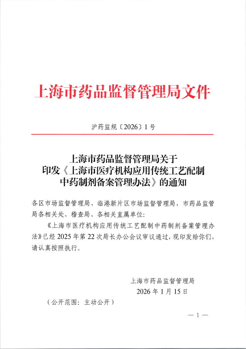 滬藥監(jiān)規(guī)〔2026〕1號