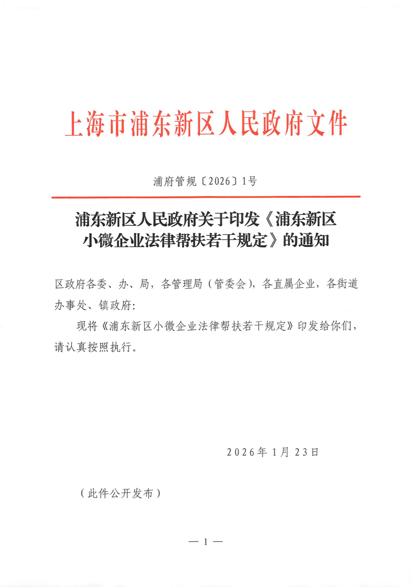 關于印發(fā)《浦東新區(qū)小微企業(yè)法律幫扶若干規(guī)定》的通知
