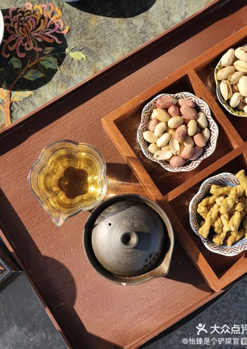 ??藏身顧村公園旁的治愈小院,綠植環(huán)繞宛如城市山野秘境。露天帳篷搭配圍爐煮茶是標(biāo)配,清甜回甘的政和白茶在炭火上慢慢升溫,佐以堅(jiān)果、點(diǎn)心與水果,暖爐旁聽著水沸聲,治愈感十足。露臺(tái)的原木桌椅與綠意相映成趣,下午時(shí)分來此,靜待夕陽西下,氛圍感拉滿,是閨蜜小聚、情侶約會(huì)的優(yōu)選之地。