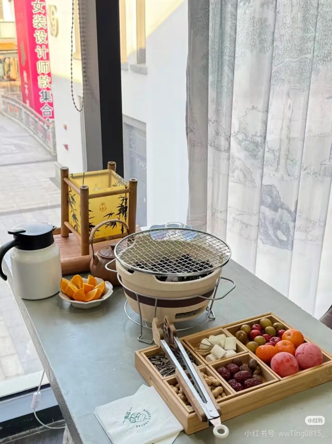 ??被熟客親切稱為寶山“有風(fēng)小院”,融合了咖啡館的輕松與茶館的禪意。復(fù)古雜貨風(fēng)的裝修滿是故事感,每一個(gè)角落都適合拍照打卡。冬日圍爐煮茶是招牌項(xiàng)目,可選醇厚的普洱茶,或是果香四溢的花果茶,搭配烤棉花糖、年糕,文藝范兒拉滿。無論是朋友小聚閑談,還是獨(dú)自靜坐閱讀,都能在此覓得一份愜意。