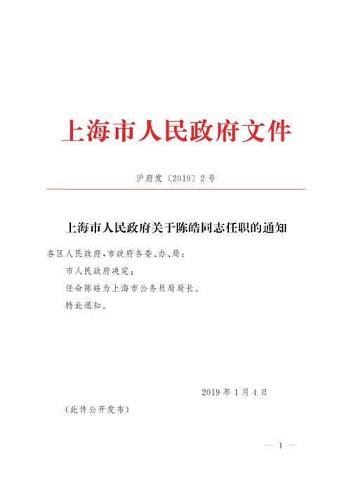 上海市人民政府關(guān)于陳皓同志任職的通知