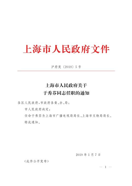 上海市人民政府關(guān)于于秀芬同志任職的通知
