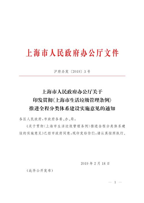 上海市人民政府辦公廳關(guān)于印發(fā)貫徹《上海市生活垃圾管理?xiàng)l例》推進(jìn)全程分類體系建設(shè)實(shí)施意見的通知