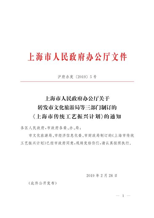 上海市人民政府辦公廳關(guān)于轉(zhuǎn)發(fā)市文化旅游局等三部門(mén)制訂的《上海市傳統(tǒng)工藝振興計(jì)劃》的通知