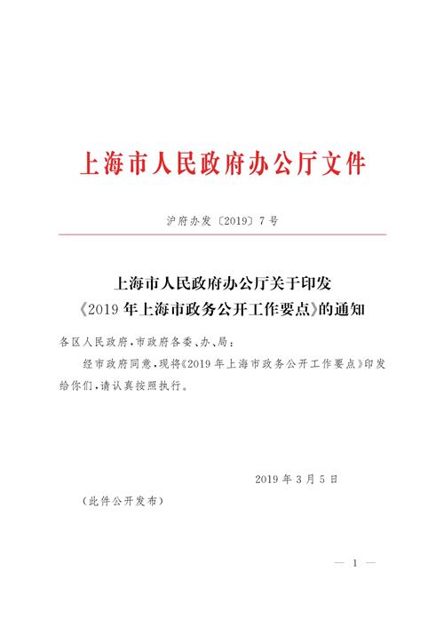 上海市人民政府辦公廳關于印發(fā)《2019年上海市政務公開工作要點》的通知