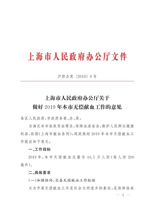 上海市人民政府辦公廳關(guān)于做好2019年本市無償獻(xiàn)血工作的意見