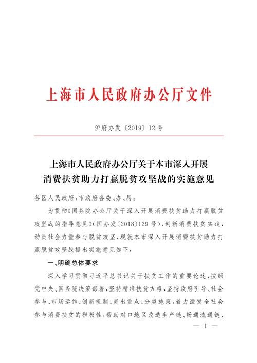 上海市人民政府辦公廳關(guān)于本市深入開展消費(fèi)扶貧助力打贏脫貧攻堅(jiān)戰(zhàn)的實(shí)施意見