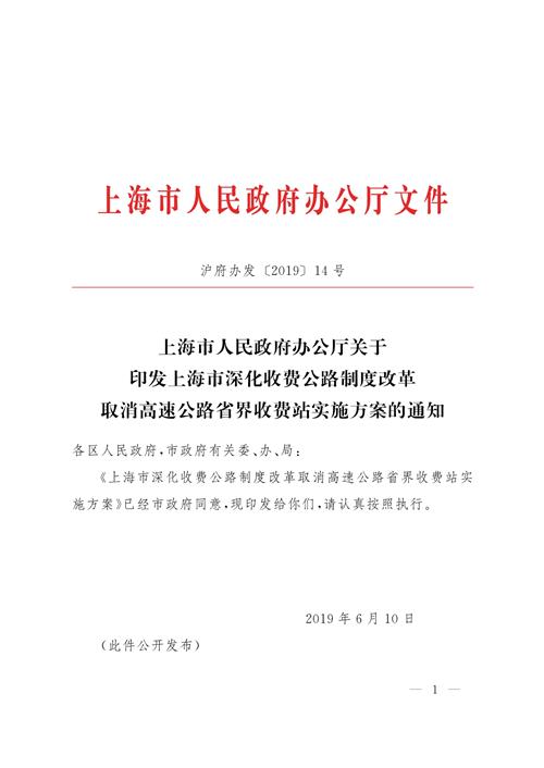 上海市人民政府辦公廳關(guān)于印發(fā)上海市深化收費公路制度改革取消高速公路省界收費站實施方案的通知
