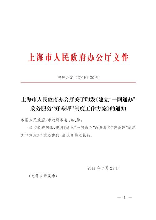 上海市人民政府辦公廳關于印發(fā)《建立“一網(wǎng)通辦”政務服務“好差評”制度工作方案》的通知