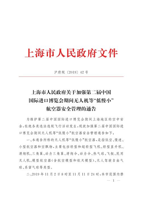 上海市人民政府關(guān)于加強(qiáng)第二屆中國(guó)國(guó)際進(jìn)口博覽會(huì)期間無(wú)人機(jī)等“低慢小”航空器安全管理的通告