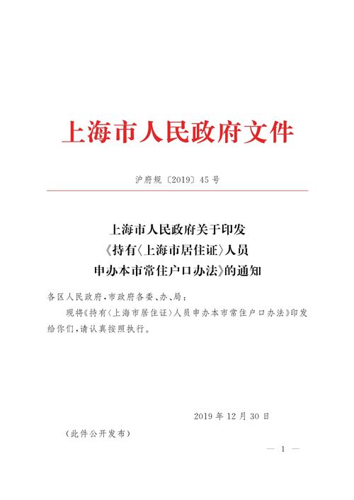 上海市人民政府關于印發(fā)《持有〈上海市居住證〉人員申辦本市常住戶口辦法》的通知