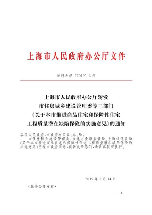 上海市人民政府辦公廳轉(zhuǎn)發(fā)市住房城鄉(xiāng)建設(shè)管理委等三部門《關(guān)于本市推進(jìn)商品住宅和保障性住宅工程質(zhì)量潛在缺陷保險(xiǎn)的實(shí)施意見》的通知