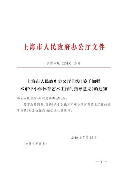 上海市人民政府辦公廳印發(fā)《關(guān)于加強(qiáng)本市中小學(xué)體育藝術(shù)工作的指導(dǎo)意見》的通知