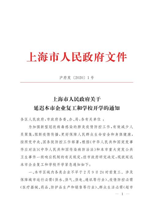 上海市人民政府關(guān)于延遲本市企業(yè)復(fù)工和學(xué)校開學(xué)的通知