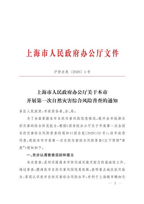 上海市人民政府辦公廳關(guān)于本市開展第一次自然災(zāi)害綜合風(fēng)險(xiǎn)普查的通知
