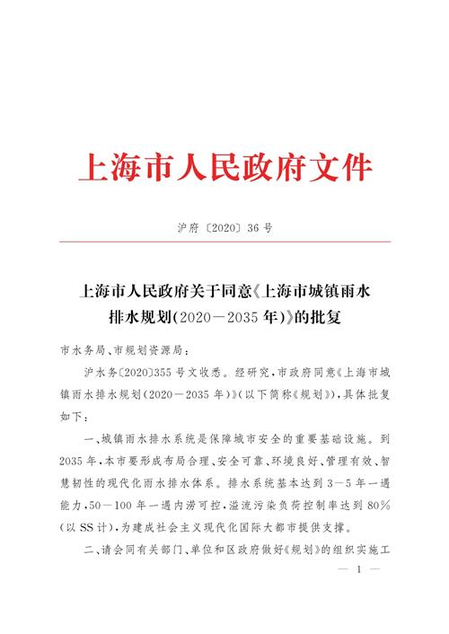 滬水務(wù)〔2020〕355號文收悉。經(jīng)研究,市政府同意《上海市城鎮(zhèn)雨水排水規(guī)劃(2020-2035年)》(以下簡稱《規(guī)劃》),具體批復(fù)如下: