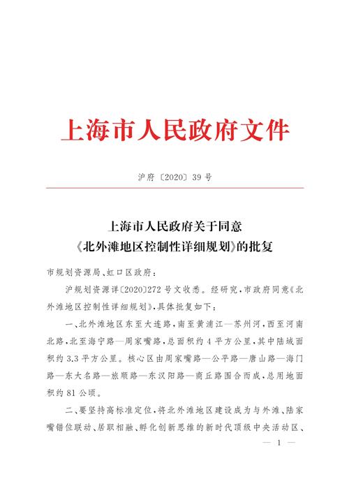 滬規(guī)劃資源詳〔2020〕272號(hào)文收悉。經(jīng)研究,市政府同意《北外灘地區(qū)控制性詳細(xì)規(guī)劃》,具體批復(fù)如下: