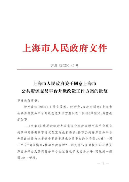 上海市人民政府關(guān)于同意上海市公共資源交易平臺(tái)升級(jí)改造工作方案的批復(fù)