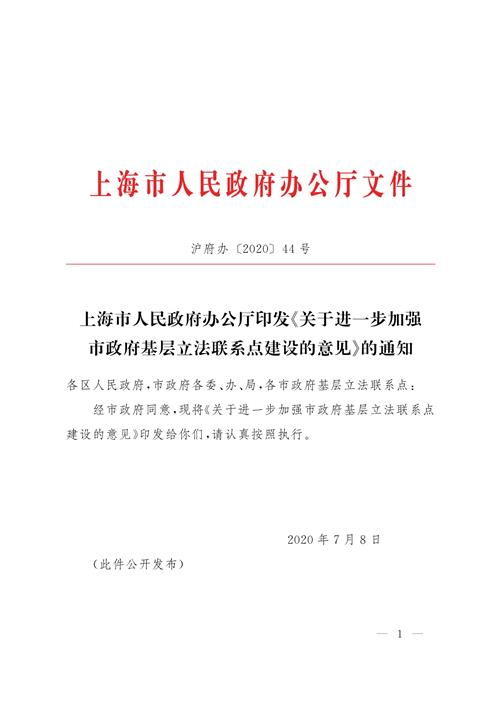 上海市人民政府辦公廳印發(fā)《關(guān)于進(jìn)一步加強(qiáng)市政府基層立法聯(lián)系點(diǎn)建設(shè)的意見》的通知