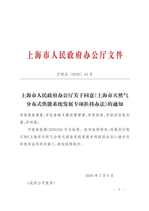 滬發(fā)改能源〔2020〕81號文收悉。經(jīng)市政府研究,同意你們制訂的《上海市天然氣分布式供能系統(tǒng)發(fā)展專項扶持辦法》,請自行印發(fā)并會同有關(guān)部門、單位按照執(zhí)行。