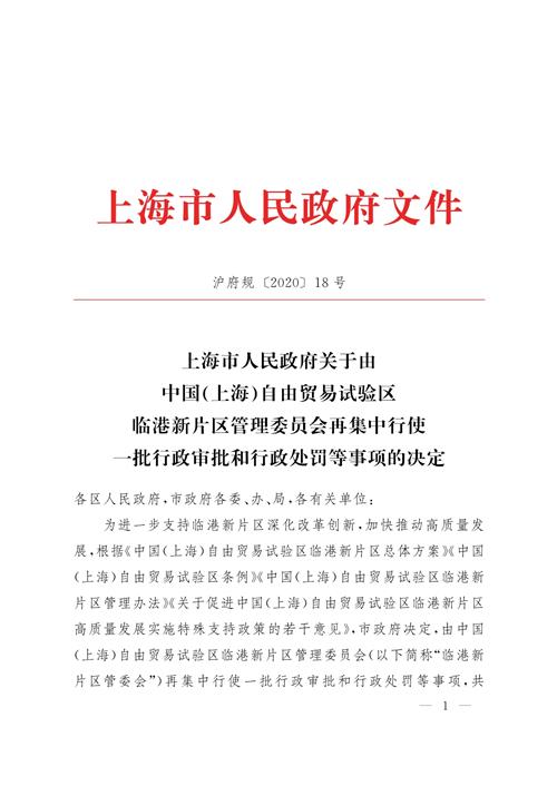 上海市人民政府關(guān)于由中國(guó)(上海)自由貿(mào)易試驗(yàn)區(qū)臨港新片區(qū)管理委員會(huì)再集中行使一批行政審批和行政處罰等事項(xiàng)的決定