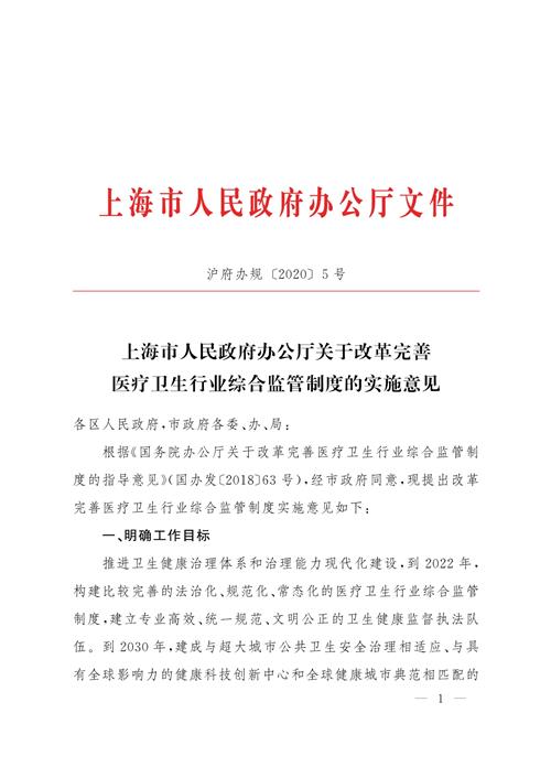 上海市人民政府辦公廳關(guān)于改革完善醫(yī)療衛(wèi)生行業(yè)綜合監(jiān)管制度的實施意見
