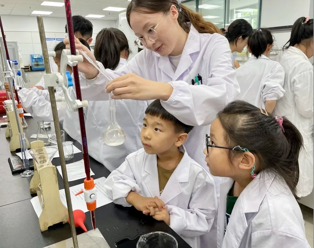 實(shí)驗(yàn)環(huán)節(jié),同學(xué)們分成三組,在工作人員的帶領(lǐng)下,依次輪流觀摩。專業(yè)檢驗(yàn)人員深入淺出地講解了檢測(cè)原理,指導(dǎo)同學(xué)們從稱量、溶解,到過濾、滴定、計(jì)算,進(jìn)行實(shí)踐操作。在微生物檢測(cè)環(huán)節(jié),同學(xué)們通過顯微鏡觀察到微觀世界里形態(tài)各異的典型細(xì)菌,興奮不已?!斑^濾好了”“變色了”“滴定過頭了”......在孩子們激動(dòng)的話語中,科學(xué)的“種子”已經(jīng)悄然種下,并茁壯成長。