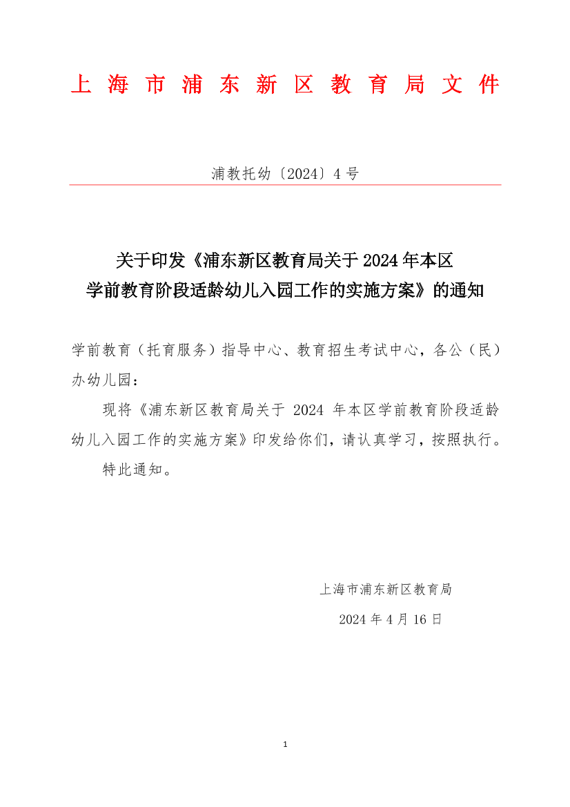 ??現(xiàn)將《浦東新區(qū)教育局關(guān)于2024年本區(qū)學(xué)前教育階段適齡幼兒入園工作的實(shí)施方案》印發(fā)給你們,請(qǐng)認(rèn)真學(xué)習(xí),按照?qǐng)?zhí)行。