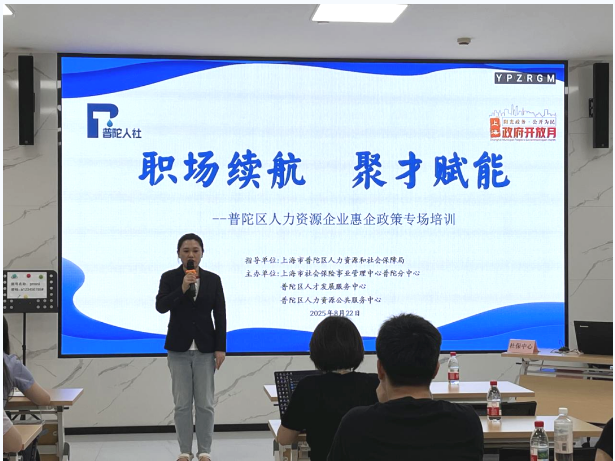 “職場(chǎng)續(xù)航 聚才賦能”——普陀區(qū)舉辦區(qū)內(nèi)人力資源服務(wù)機(jī)構(gòu)惠企政策專場(chǎng)培訓(xùn)會(huì) 2025-08-26 來(lái)源:普陀區(qū)人民政府