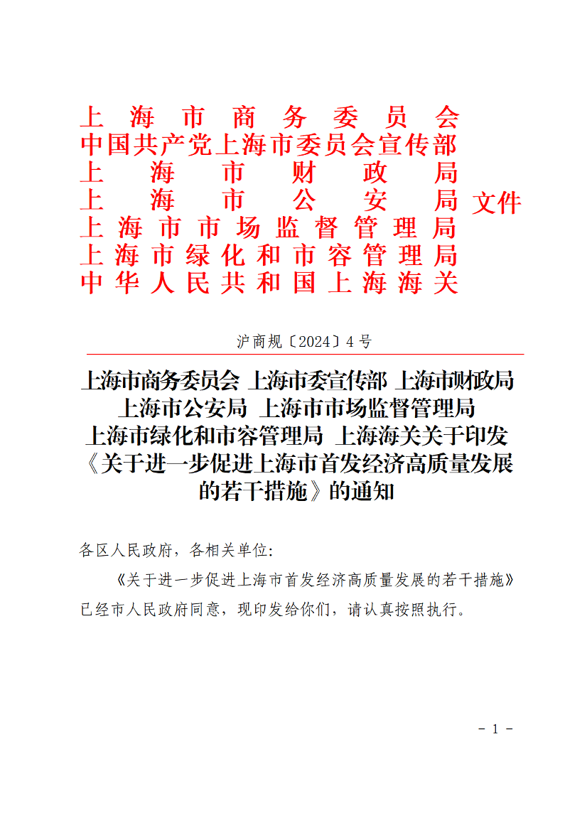 關(guān)于進(jìn)一步促進(jìn)上海市首發(fā)經(jīng)濟(jì)高質(zhì)量發(fā)展的若干措施