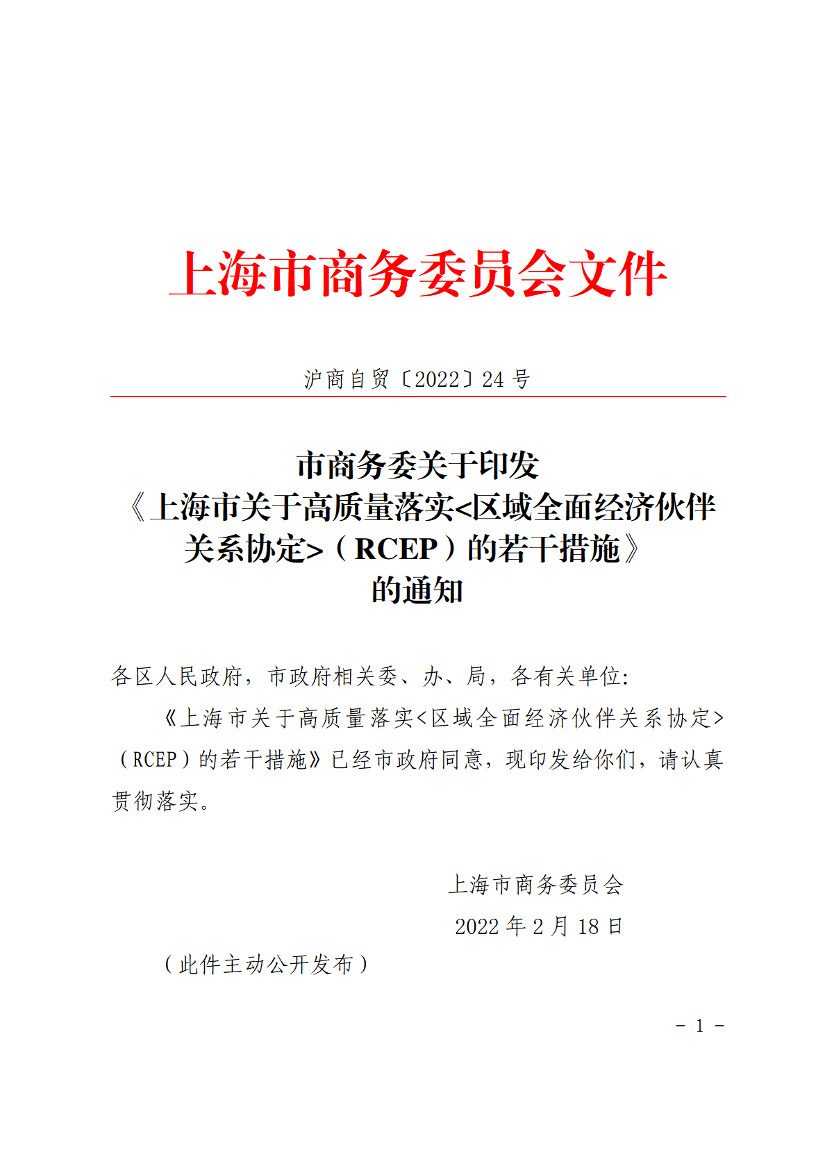 ??《上海市關(guān)于高質(zhì)量落實(shí)<區(qū)域全面經(jīng)濟(jì)伙伴關(guān)系協(xié)定>(RCEP)的若干措施》已經(jīng)市政府同意,現(xiàn)印發(fā)給你們,請(qǐng)認(rèn)真貫徹落實(shí)。