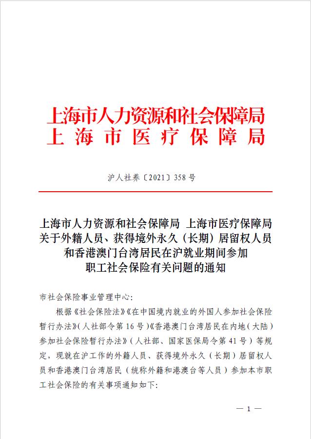 根據《社會保險法》《在中國境內就業(yè)的外國人參加社會保險暫行辦法》(人社部令第16號)《香港澳門臺灣居民在內地(大陸)參加社會保險暫行辦法》(人社部、國家醫(yī)保局令第41號)等規(guī)定,現就在滬工作的外籍人員、獲得境外永久(長期)居留權人員和香港澳門臺灣居民(統(tǒng)稱外籍和港澳臺等人員)參加本市職工社會保險的有關事項通知如下: