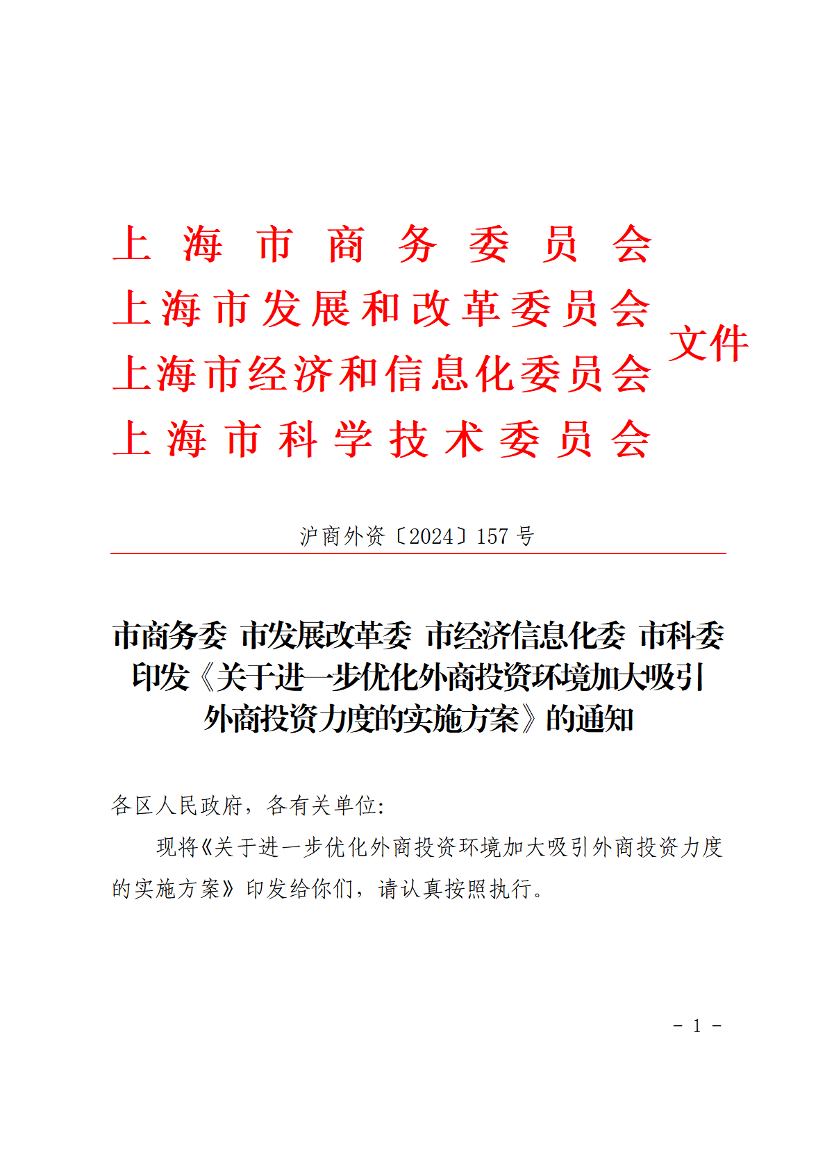 ??為深入貫徹落實《國務院關(guān)于進一步優(yōu)化外商投資環(huán)境加大吸引外商投資力度的意見》(國發(fā)〔2023〕11號)精神,營造市場化、法治化、國際化一流營商環(huán)境,更大力度、更加有效吸引和利用外商投資,結(jié)合上海實際,制定本方案。