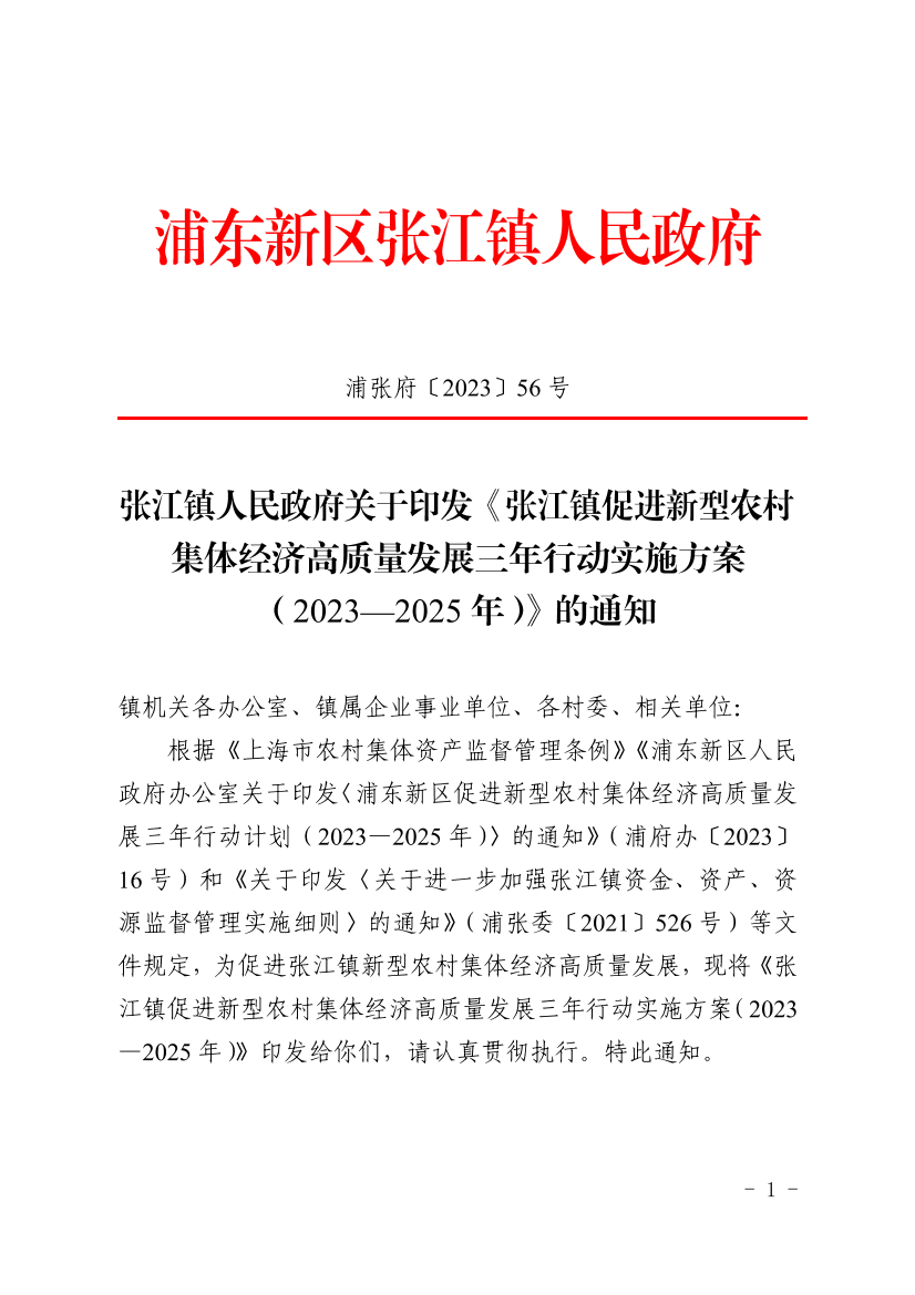 ??根據(jù)《上海市農(nóng)村集體資產(chǎn)監(jiān)督管理?xiàng)l例》《浦東新區(qū)人民政府辦公室關(guān)于印發(fā)〈浦東新區(qū)促進(jìn)新型農(nóng)村集體經(jīng)濟(jì)高質(zhì)量發(fā)展三年行動(dòng)計(jì)劃(2023-2025年)〉的通知》(浦府辦〔2023〕16號(hào))和《關(guān)于印發(fā)〈關(guān)于進(jìn)一步加強(qiáng)張江鎮(zhèn)資金、資產(chǎn)、資源監(jiān)督管理實(shí)施細(xì)則〉的通知》(浦張委〔2021〕526號(hào))等文件規(guī)定,為促進(jìn)張江鎮(zhèn)新型農(nóng)村集體經(jīng)濟(jì)高質(zhì)量發(fā)展,現(xiàn)將《張江鎮(zhèn)促進(jìn)新型農(nóng)村集體經(jīng)濟(jì)高質(zhì)量發(fā)展三年行動(dòng)實(shí)施方案(2023—2025年)》印發(fā)給你們,請(qǐng)認(rèn)真貫徹執(zhí)行。特此通知。