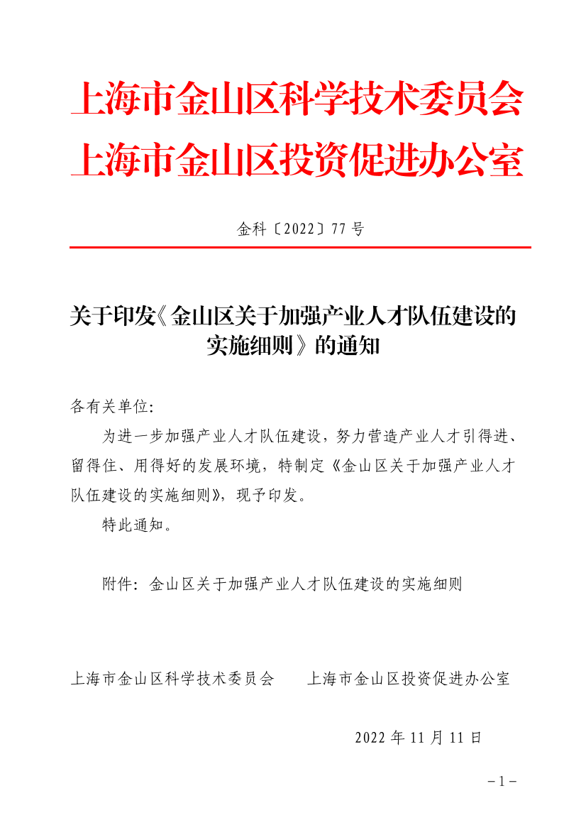 附件:金山區(qū)關(guān)于加強(qiáng)產(chǎn)業(yè)人才隊(duì)伍建設(shè)的實(shí)施細(xì)則