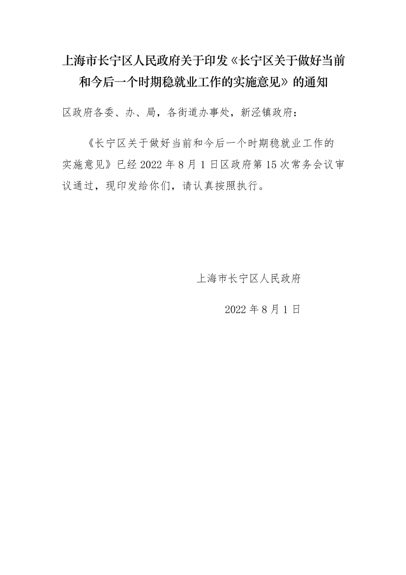 《長寧區(qū)關(guān)于做好當(dāng)前和今后一個時期穩(wěn)就業(yè)工作的實施意見》已經(jīng)2022年8月1日區(qū)政府第15次常務(wù)會議審議通過,現(xiàn)印發(fā)給你們,請認(rèn)真按照執(zhí)行。