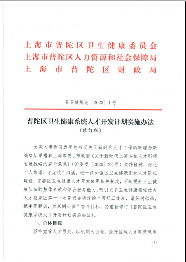 ??3、本實施辦法自2023年11月15日起開始實施。文件有效期至2026年11月14日,由區(qū)衛(wèi)健委負責解釋。原《普陀區(qū)衛(wèi)生健康系統(tǒng)人才開發(fā)計劃實施辦法》同時廢止。
