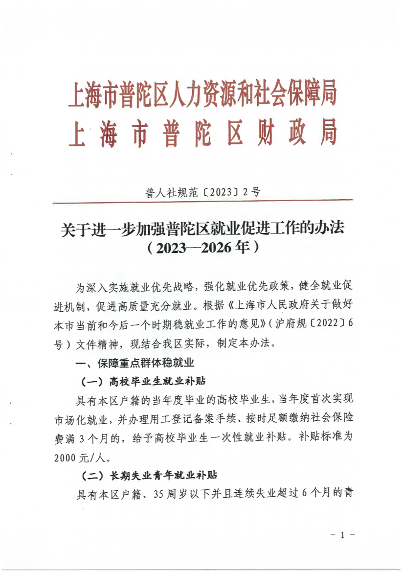 ??(六)本辦法自2023年1月18日起實施,有效期至2026年12月31日。2023年1月1日至2023年1月17日的區(qū)就業(yè)促進(jìn)工作參照本辦法執(zhí)行。市、區(qū)同一類型的政策,原則上從高不重疊。文件實施后,市、區(qū)有新規(guī)定的,按新規(guī)定執(zhí)行。本辦法由區(qū)人力資源和社會保障局負(fù)責(zé)解釋。