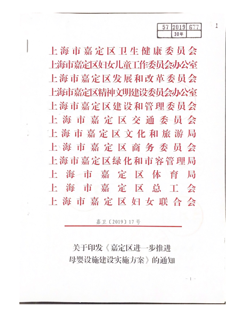 ??關(guān)于印發(fā)《嘉定區(qū)進(jìn)一步推進(jìn)母嬰設(shè)施建設(shè)實(shí)施方案》的通知