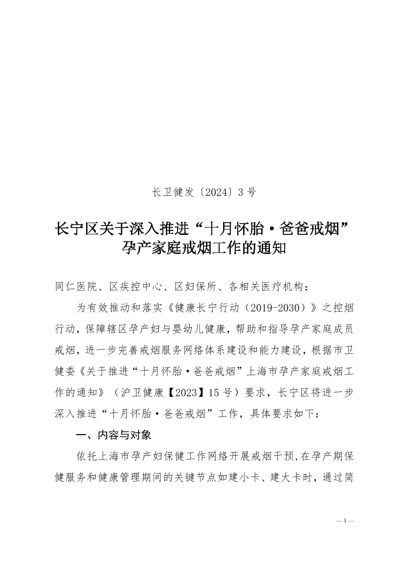 長寧區(qū)關(guān)于深入推進(jìn)“十月懷胎·爸爸戒煙”孕產(chǎn)家庭戒煙工作的通知
