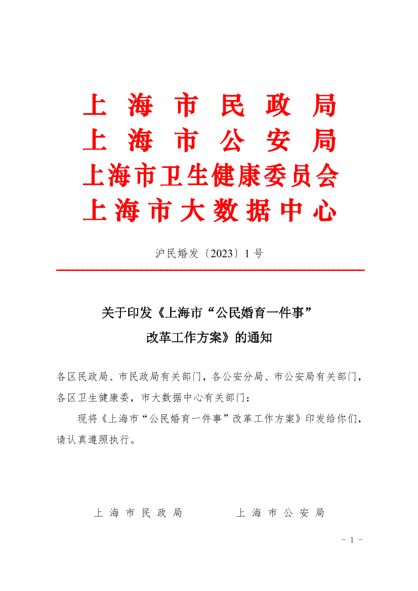 ??現(xiàn)將《上海市“公民婚育一件事”改革工作方案》印發(fā)給你們,請(qǐng)認(rèn)真遵照?qǐng)?zhí)行。