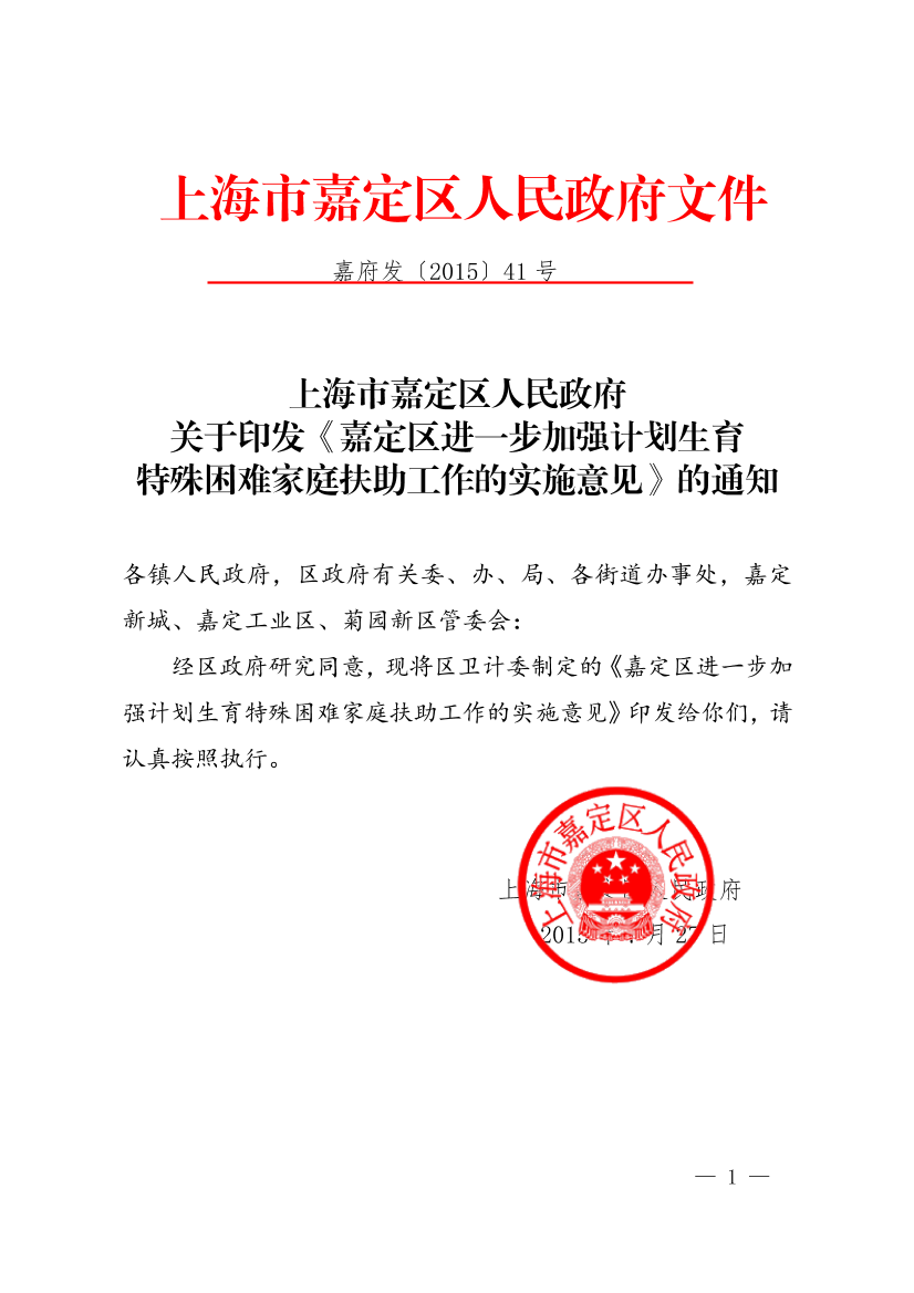 嘉定區(qū)進(jìn)一步加強(qiáng)計(jì)劃生育特殊困難家庭扶助工作的實(shí)施意見