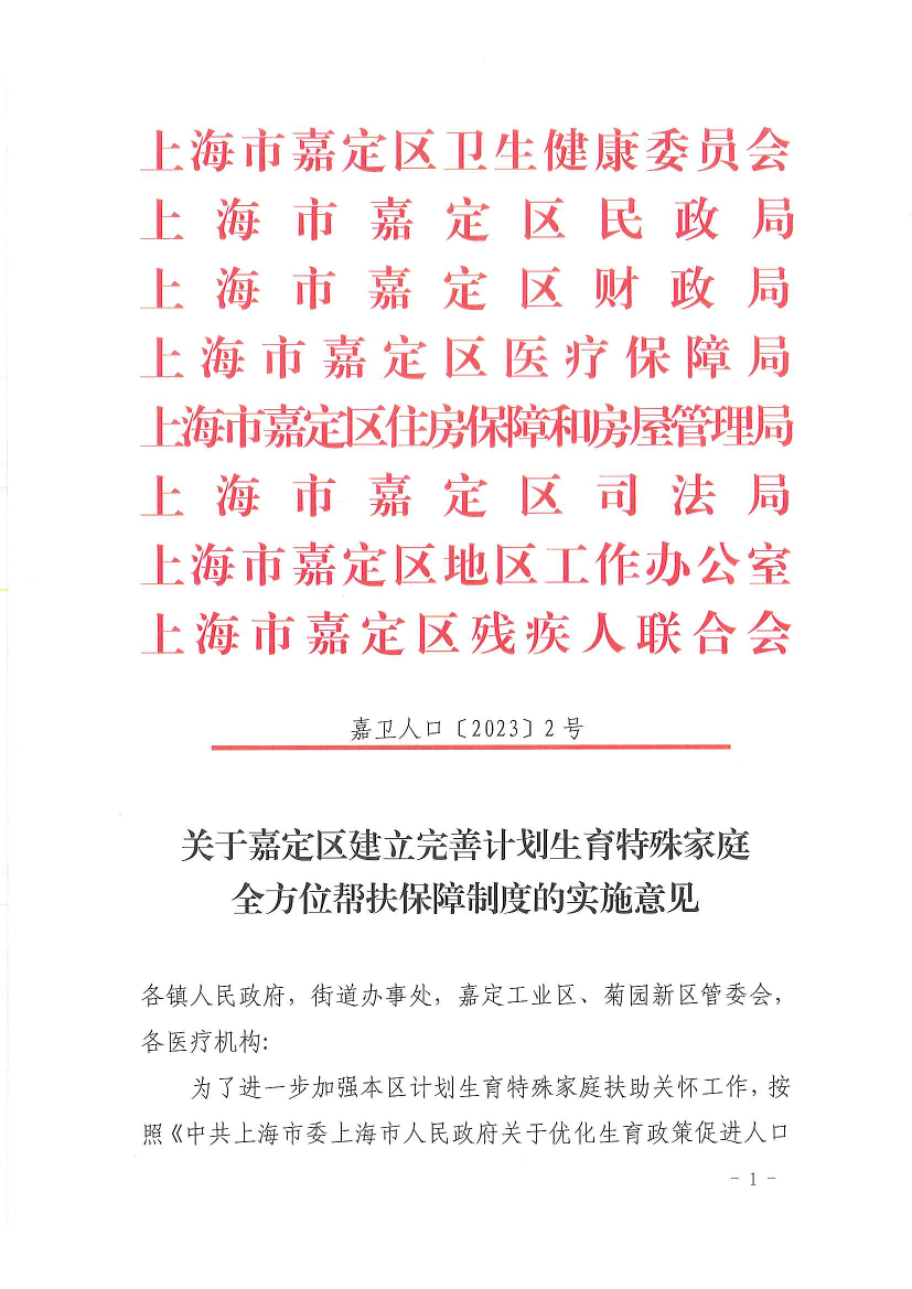 ??為了進一步加強本區(qū)計劃生育特殊家庭扶助關(guān)懷工作,按照《中共上海市委上海市人民政府關(guān)于優(yōu)化生育政策促進人口長期均衡發(fā)展的實施意見》《上海市人口與計劃生育條例》《上海市計劃生育獎勵與補助若干規(guī)定》等法律法規(guī),根據(jù)《關(guān)于本市建立完善計劃生育特殊家庭全方位幫扶保障制度的實施意見》(滬衛(wèi)人口〔2023〕2號)精神,結(jié)合本區(qū)實際,現(xiàn)就建立完善計劃生育特殊家庭全方位幫扶保障制度,提出如下實施意見:
