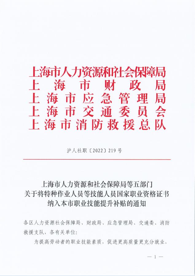 ??特種作業(yè)人員、軌道交通運輸服務人員、消防設施操作員等技能人員國家職業(yè)資格證書(見附件),納入本市職業(yè)技能提升補貼范圍,符合條件的勞動者可憑發(fā)文之日后頒發(fā)的職業(yè)資格證書按滬人社規(guī)〔2022〕17號文件相關(guān)規(guī)定申請職業(yè)技能提升補貼。