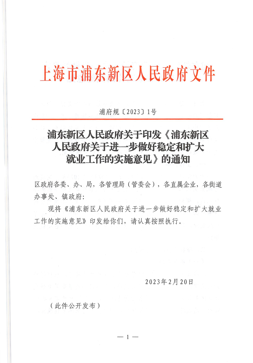 浦東新區(qū)人民政府關(guān)于進(jìn)一步做好穩(wěn)定和擴(kuò)大就業(yè)工作的實施意見